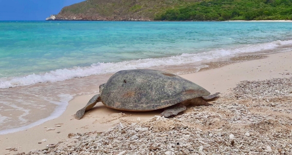 Hòn Tre Lớn có bãi cát trắng mịn, tập trung nhiều rùa biển lên đẻ trứng (xếp thứ hai sau bãi Cát Lớn, Hòn Bảy Cạnh).