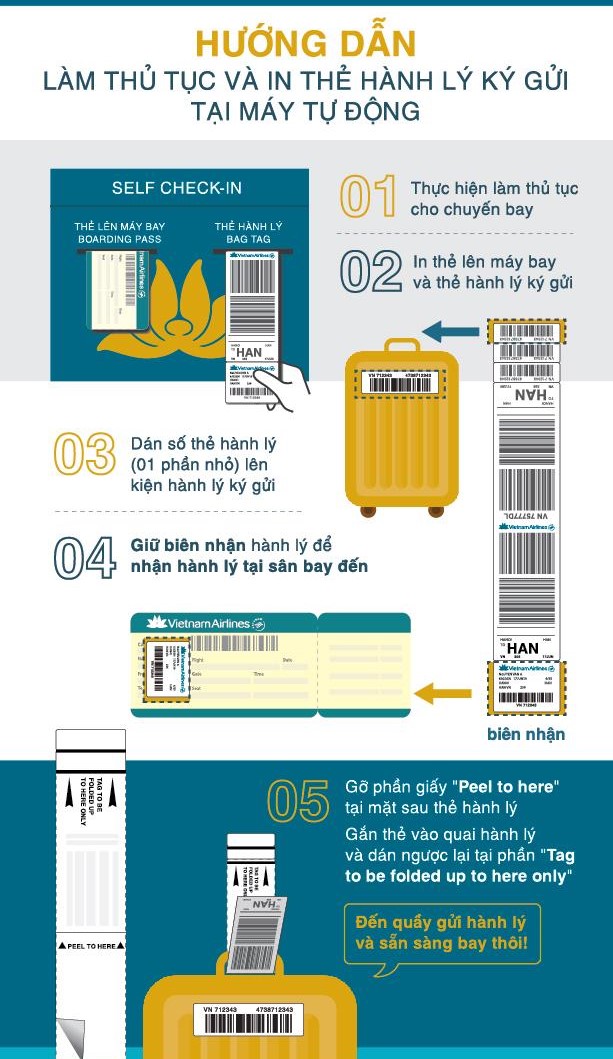 - Hành khách có thể làm thủ tục tại các kiosk Check in tại sân bay