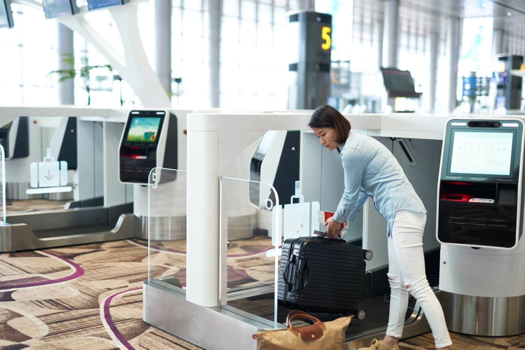 - Bước 2: Đặt hành lý đã gắn thẻ in từ Kiosk check-in tại khu vực được chỉ định.