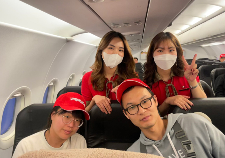 Những hành khách trên chuyến bay nối lại giữa Đà Lạt và Seoul đầu tiên.