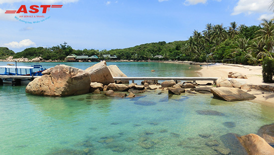 Cách thành phố biển Nha Trang khoảng 60 cây số, nằm trên bán đảo Hòn Mèo, vịnh Ninh Vân mang đậm nét hoang sơ và thuần khiết. Nơi đây đặc biệt thích hợp cho những ai muốn tìm cảm giác thư thái trong không gian biển tĩnh lặng. Ngoài ra, bạn cũng có thể ngắm san hô, lặn biển hay thử chơi lướt sóng, lướt ván, đi thuyền Kayak.